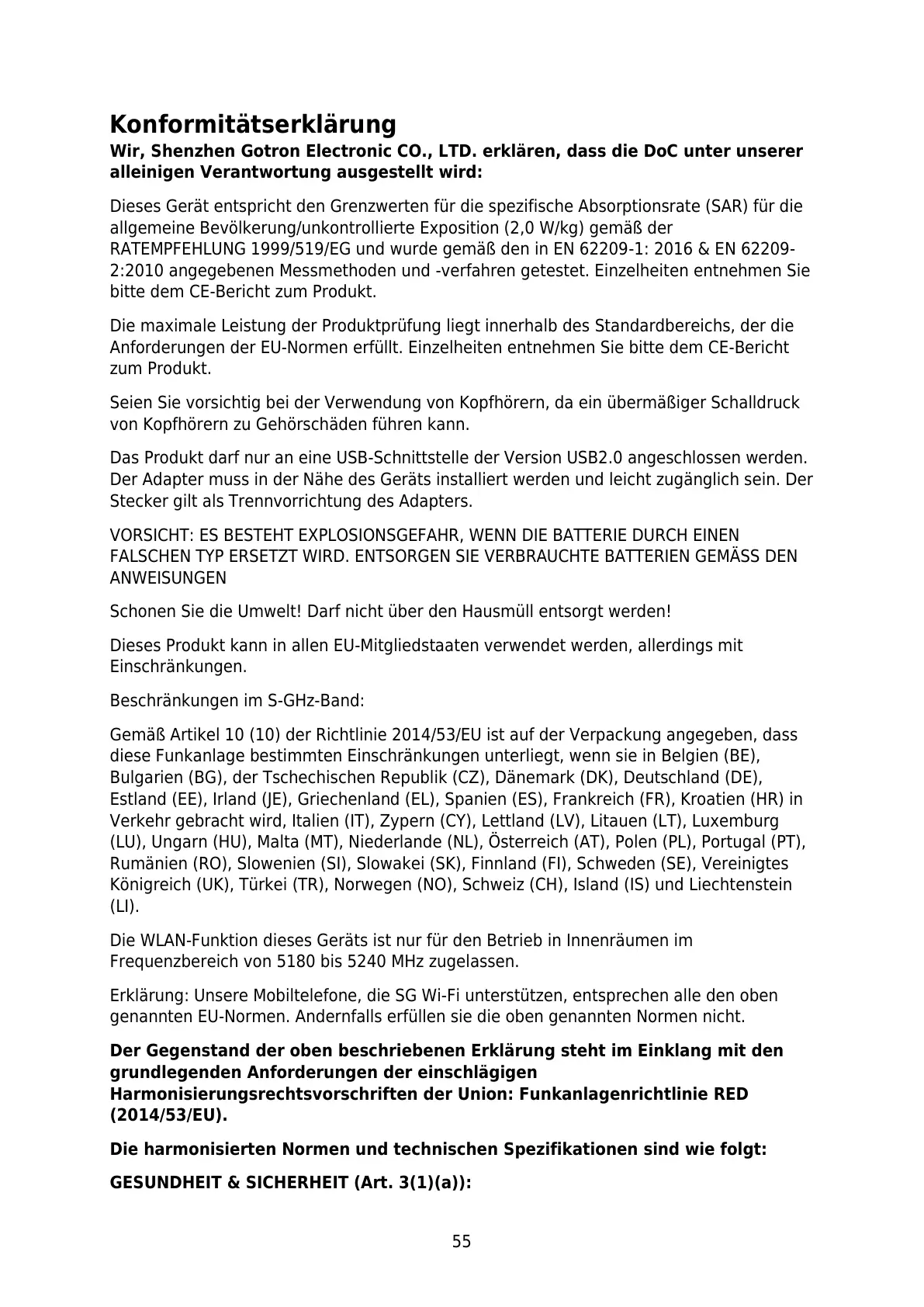 Wir, Shenzhen Gotron Electronic CO., LTD. erklären, dass die DoC unter unserer