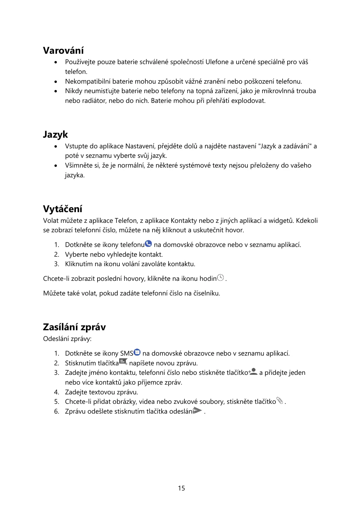 Používejte pouze baterie schválené společností Ulefone a určené speciálně pro váš