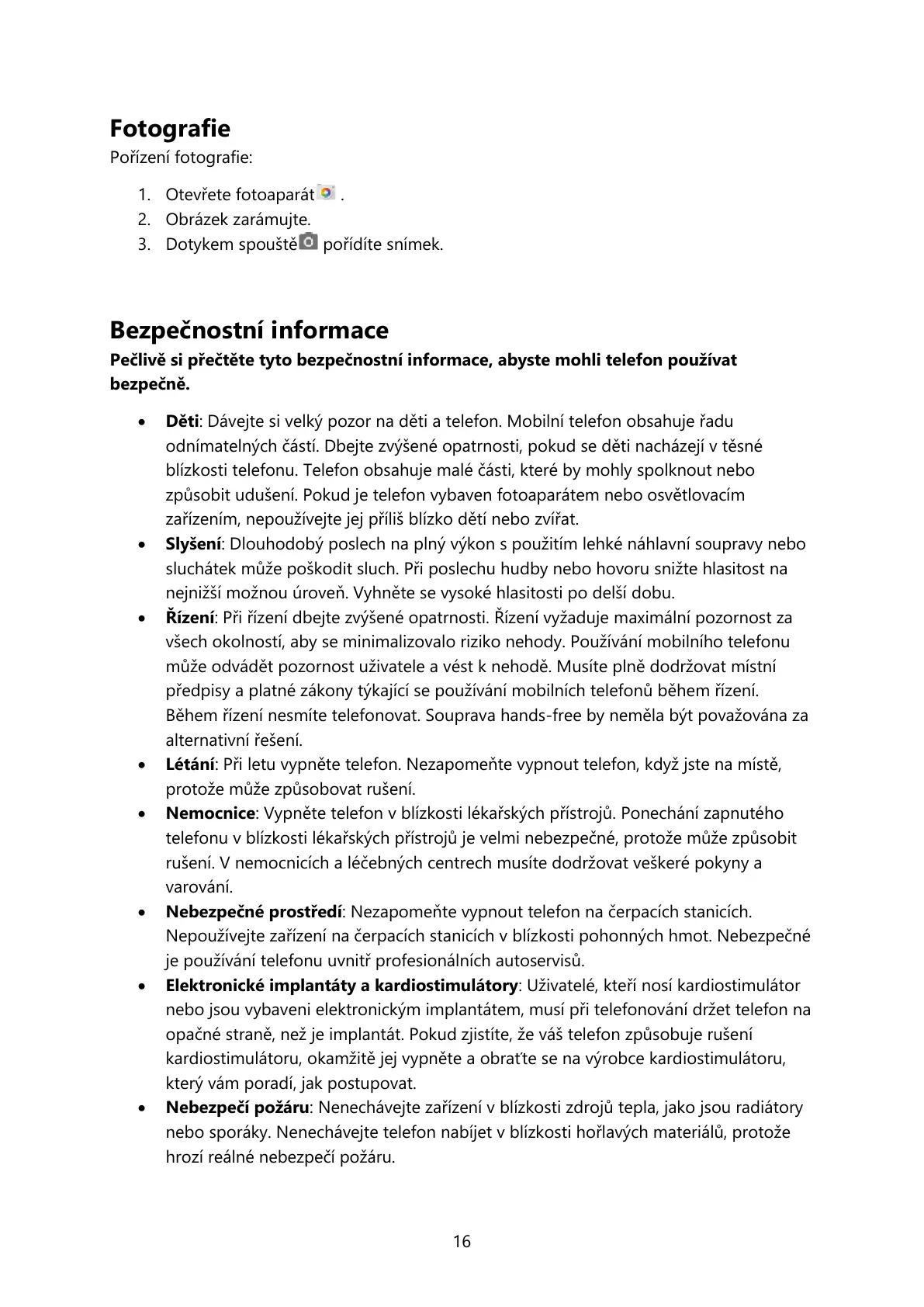 Létání: Při letu vypněte telefon. Nezapomeňte vypnout telefon, když jste na místě,
