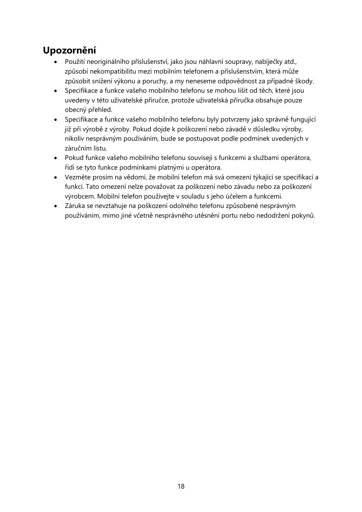 výrobcem. Mobilní telefon používejte v souladu s jeho účelem a funkcemi.