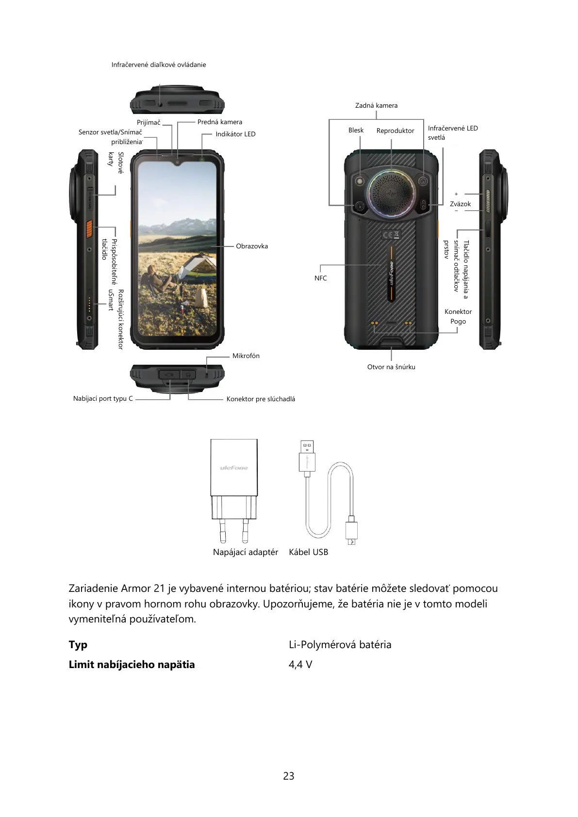 Zariadenie Armor 21 je vybavené internou batériou; stav batérie žete sledovať pomocou