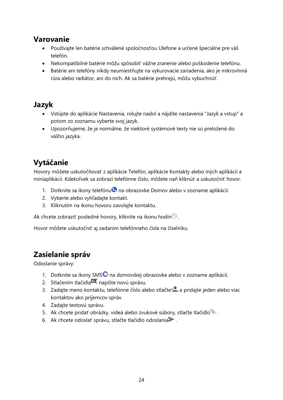 Používajte len batérie schválené spoločnosťou Ulefone a určené špeciálne pre váš