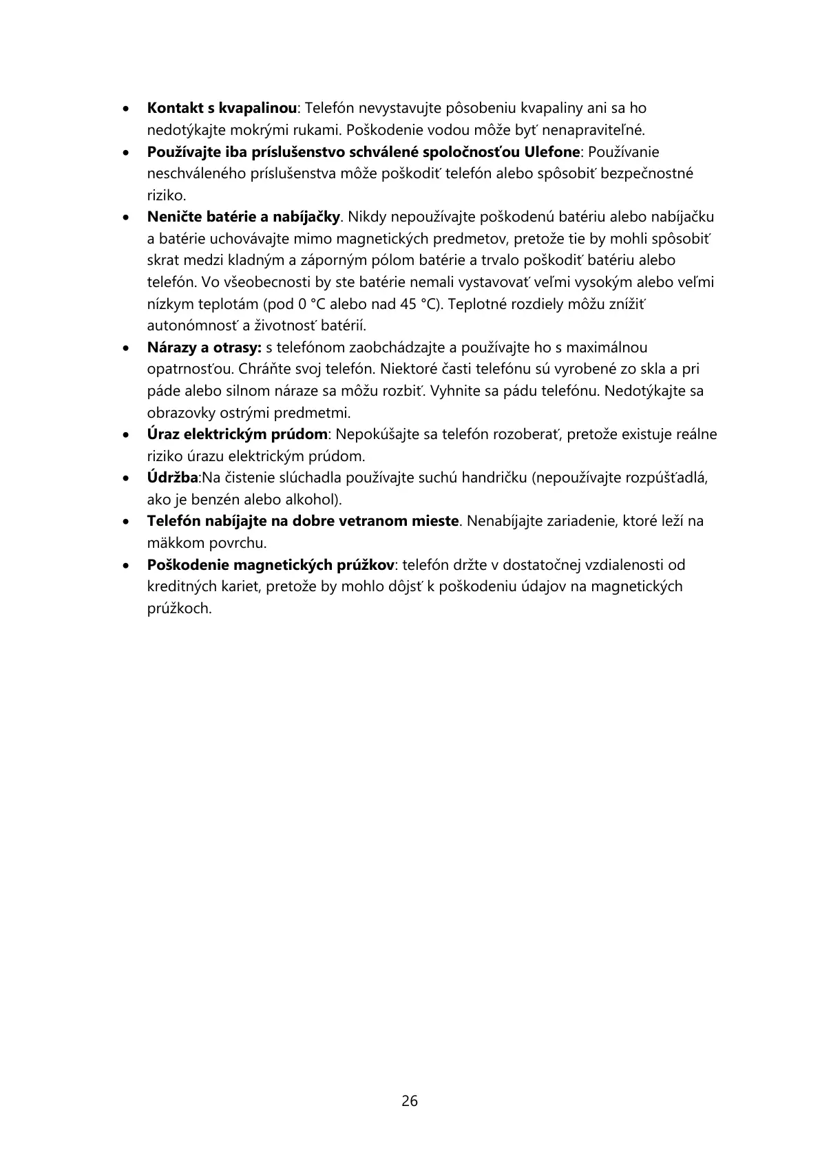 Kontakt s kvapalinou: Telefón nevystavujte pôsobeniu kvapaliny ani sa ho