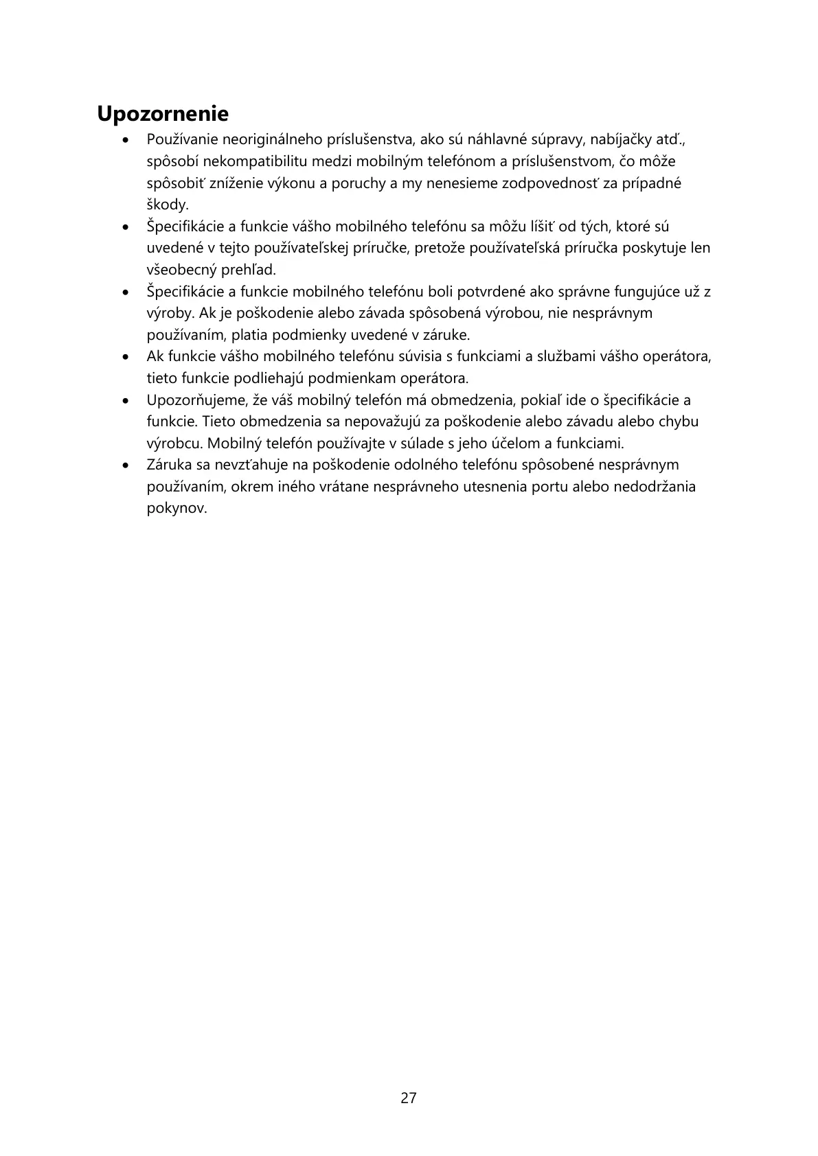 výrobcu. Mobilný telefón používajte v súlade s jeho účelom a funkciami.
