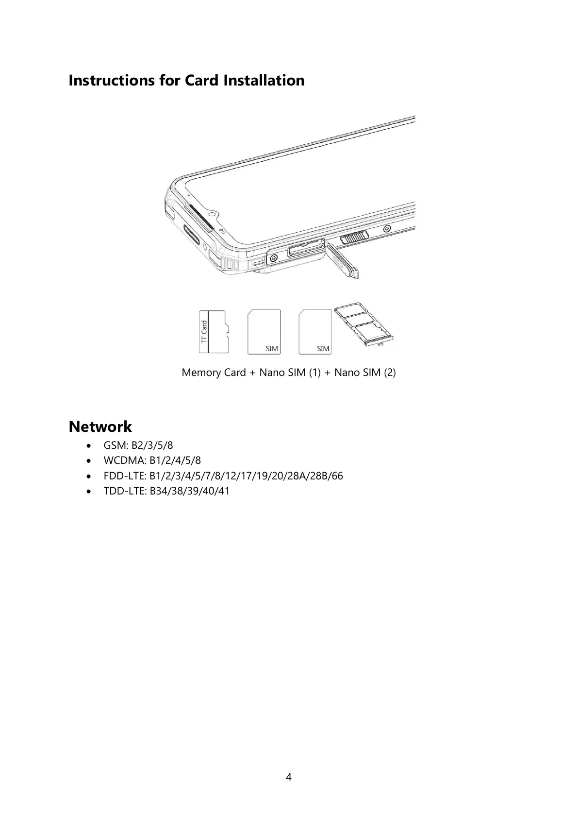 Ulefone ARMOR 21 - Device Setup and Specifications; Card Installation; Network Specifications
