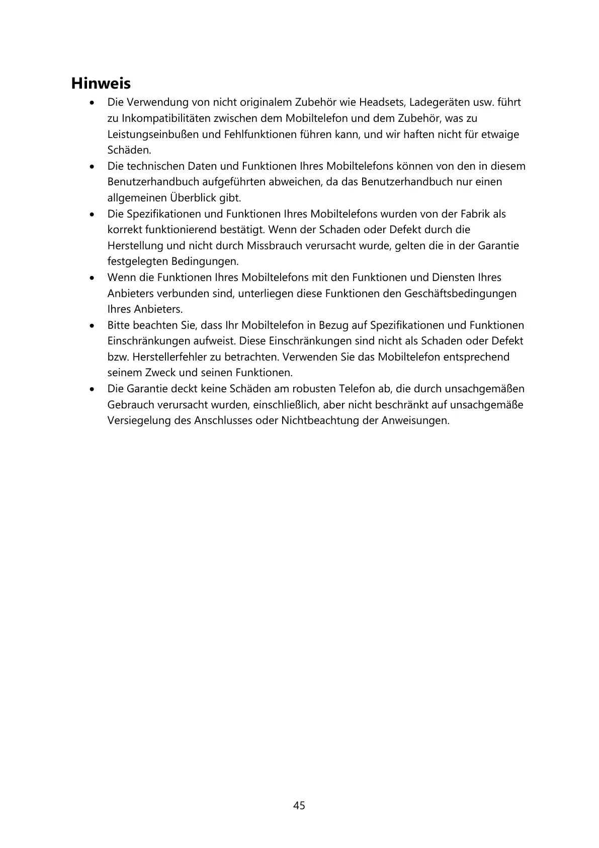 Die Garantie deckt keine Schäden am robusten Telefon ab, die durch unsachgemäßen