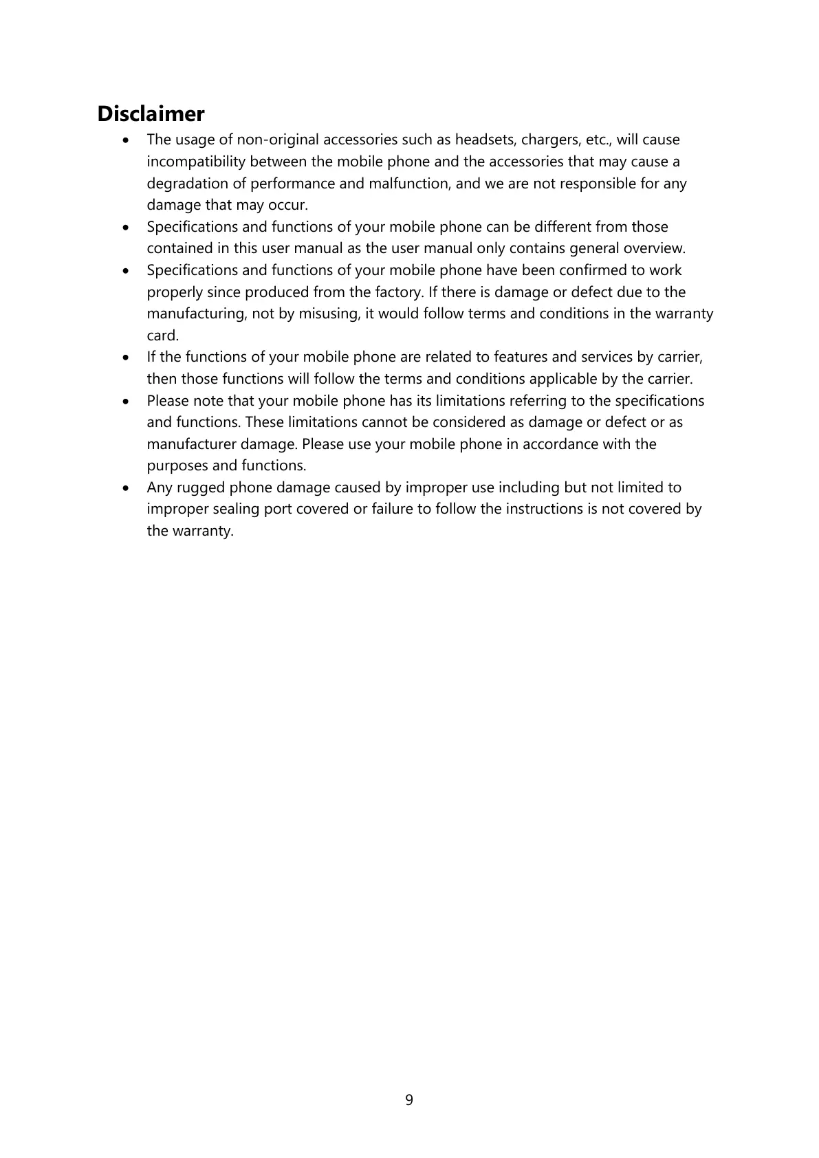 The usage of non-original accessories such as headsets, chargers, etc., will cause