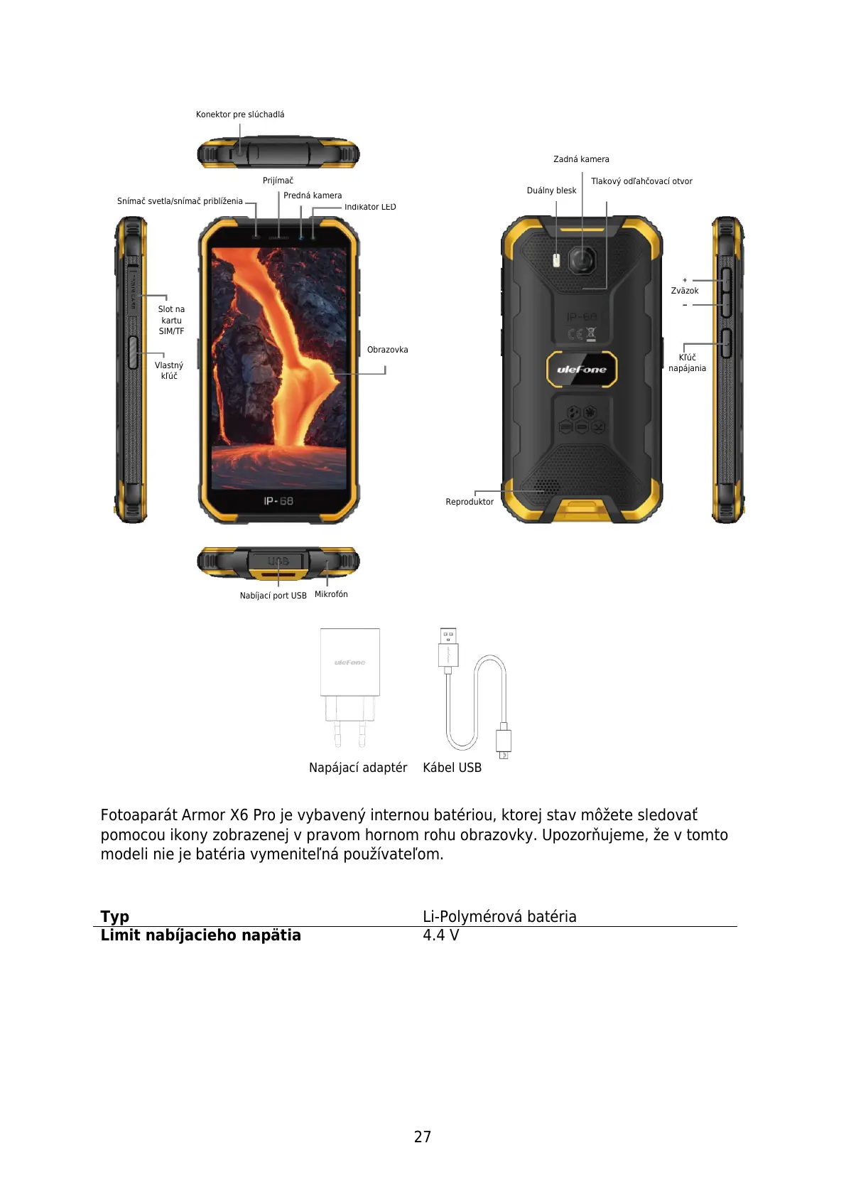 Fotoaparát Armor X6 Pro je vybavený internou batériou, ktorej stav môžete sledovať