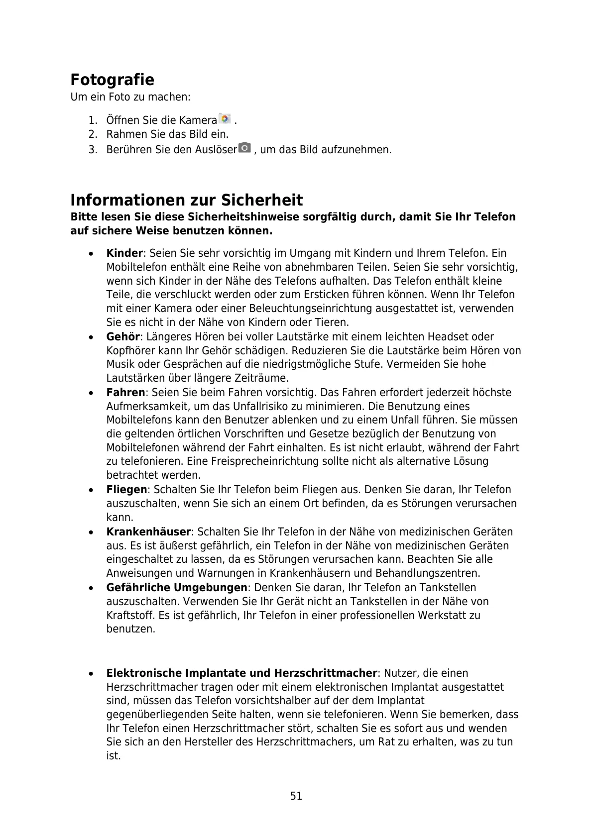 Bitte lesen Sie diese Sicherheitshinweise sorgfältig durch, damit Sie Ihr Telefon