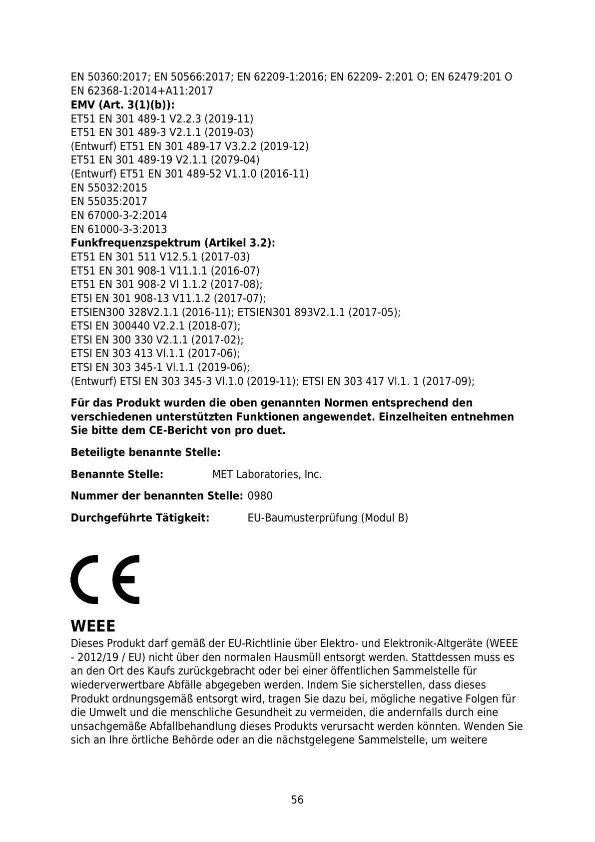 EN 50360:2017; EN 50566:2017; EN 62209-1:2016; EN 62209- 2:201 O; EN 62479:201 O