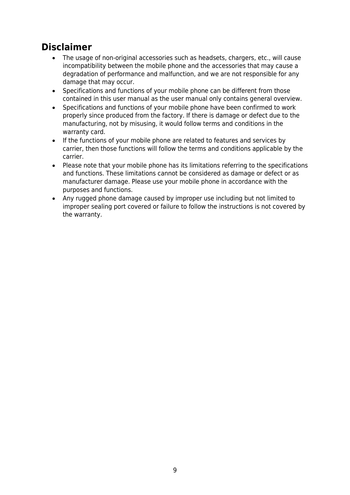 manufacturer damage. Please use your mobile phone in accordance with the