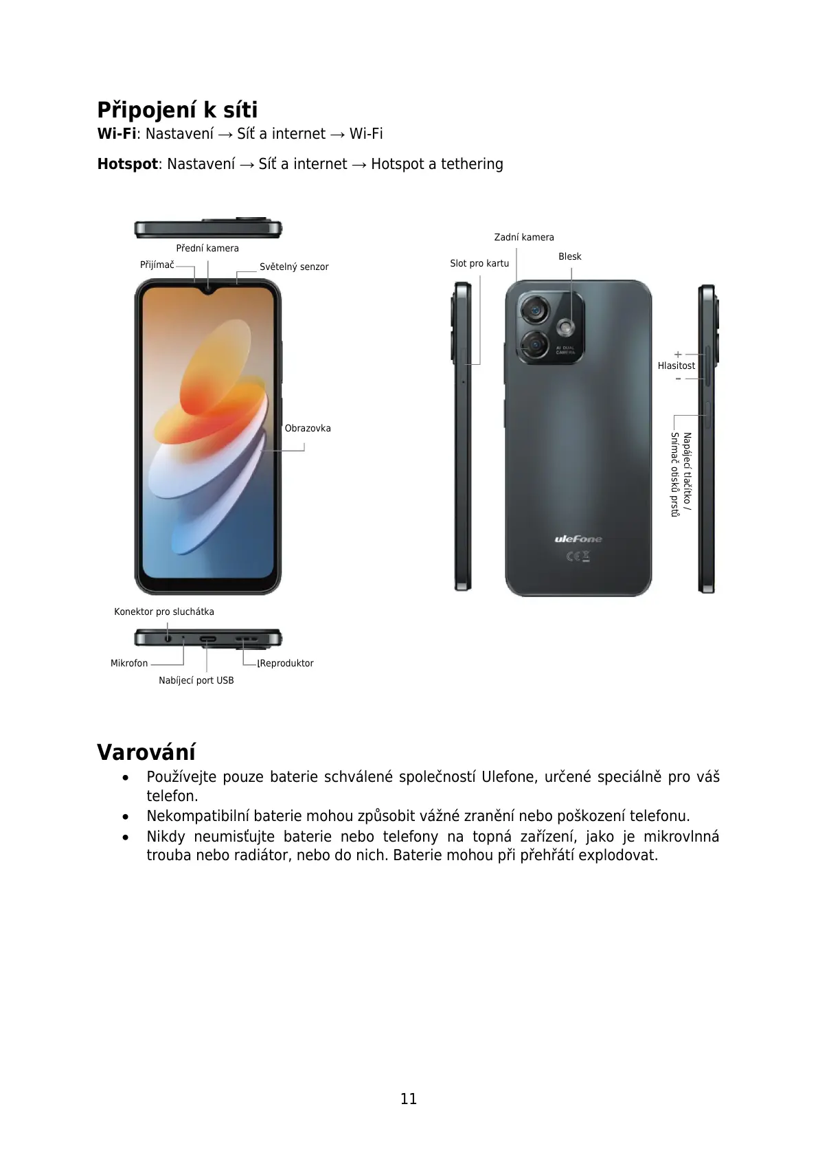 Používejte pouze baterie schválené společností Ulefone, určené speciálně pro váš