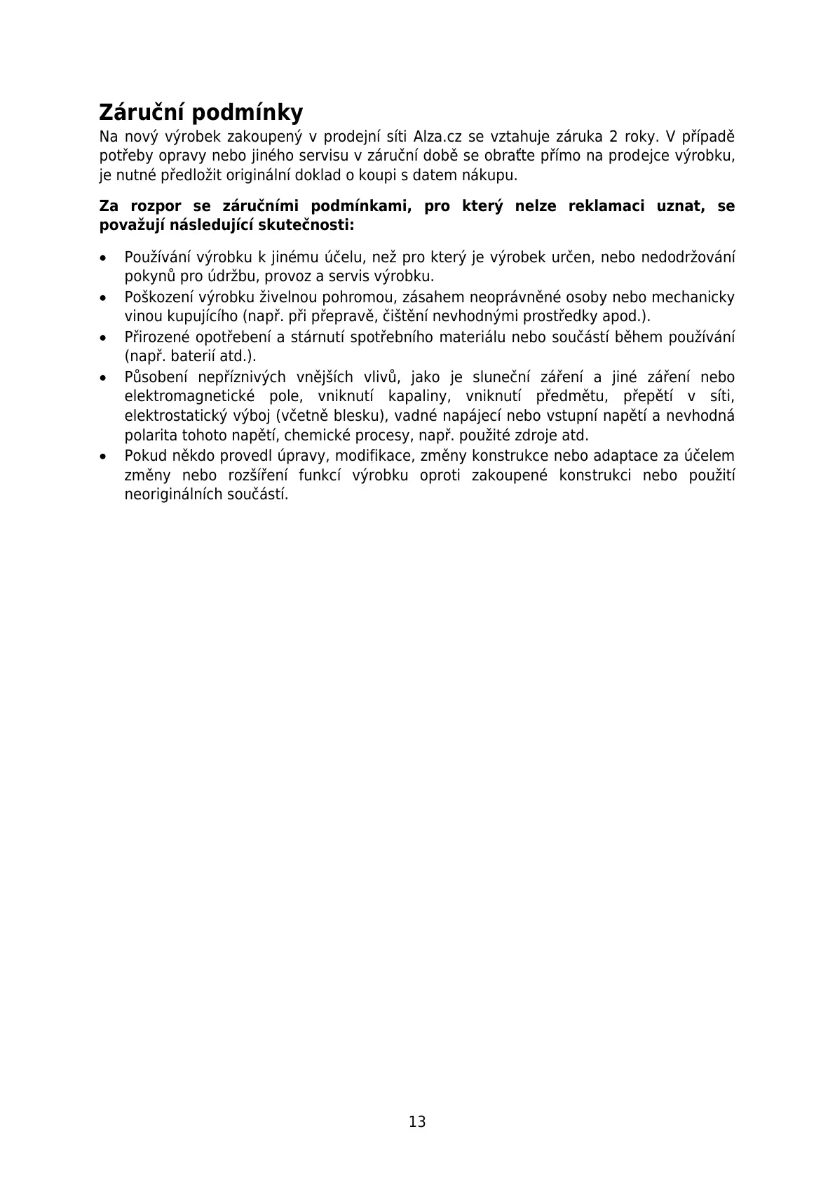 Na nový výrobek zakoupený v prodejní síti Alza.cz se vztahuje záruka 2 roky. V případě