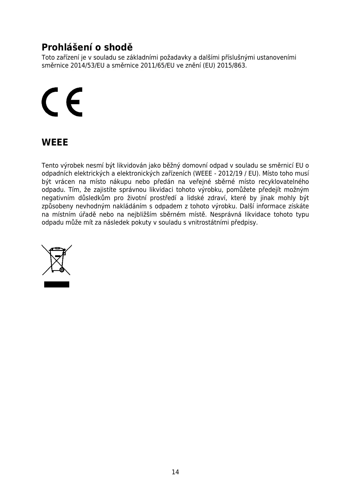 Tento výrobek nesmí být likvidován jako běžný domovní odpad v souladu se směrnicí EU o