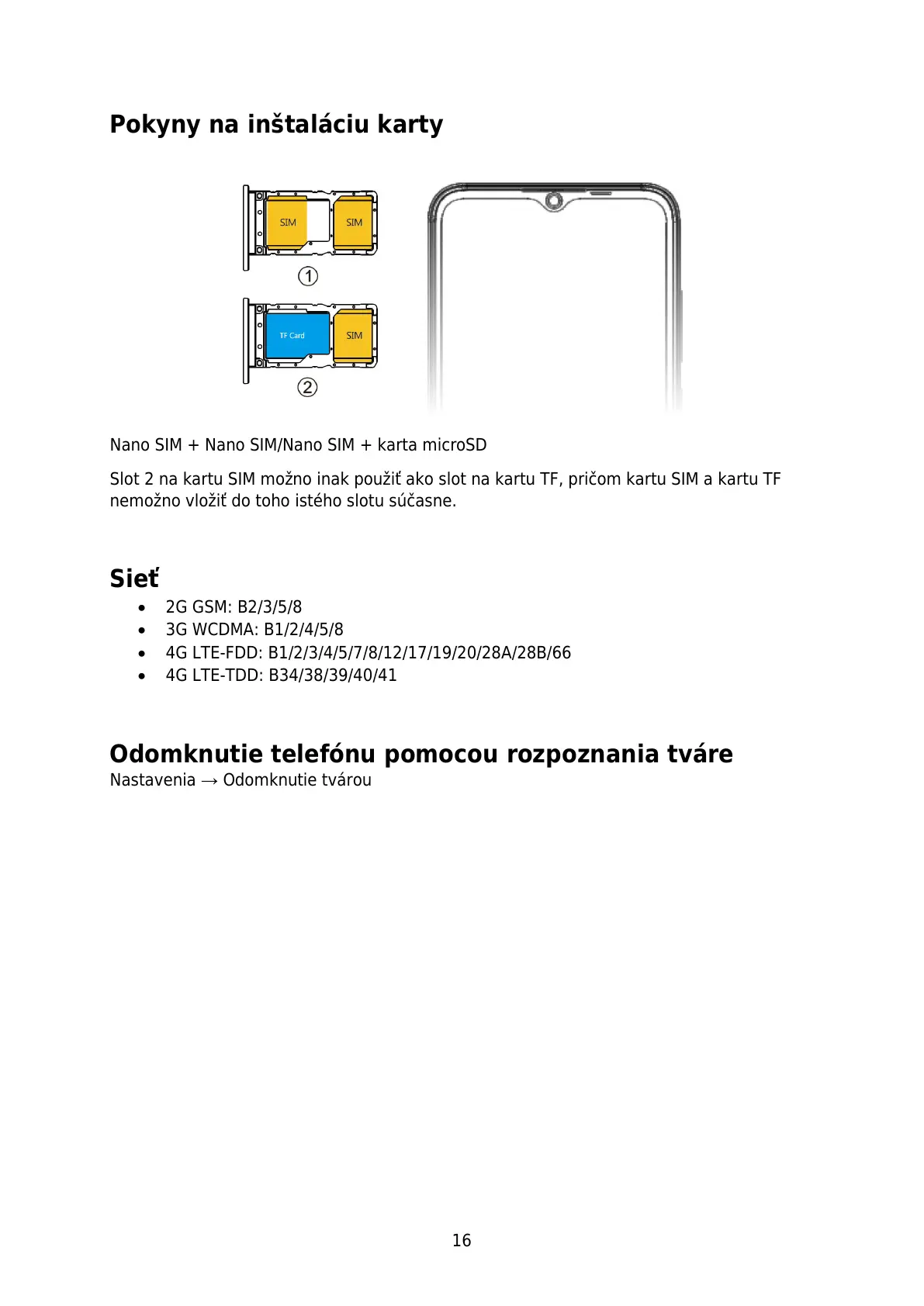 Slot 2 na kartu SIM možno inak použiť ako slot na kartu TF, pričom kartu SIM a kartu TF