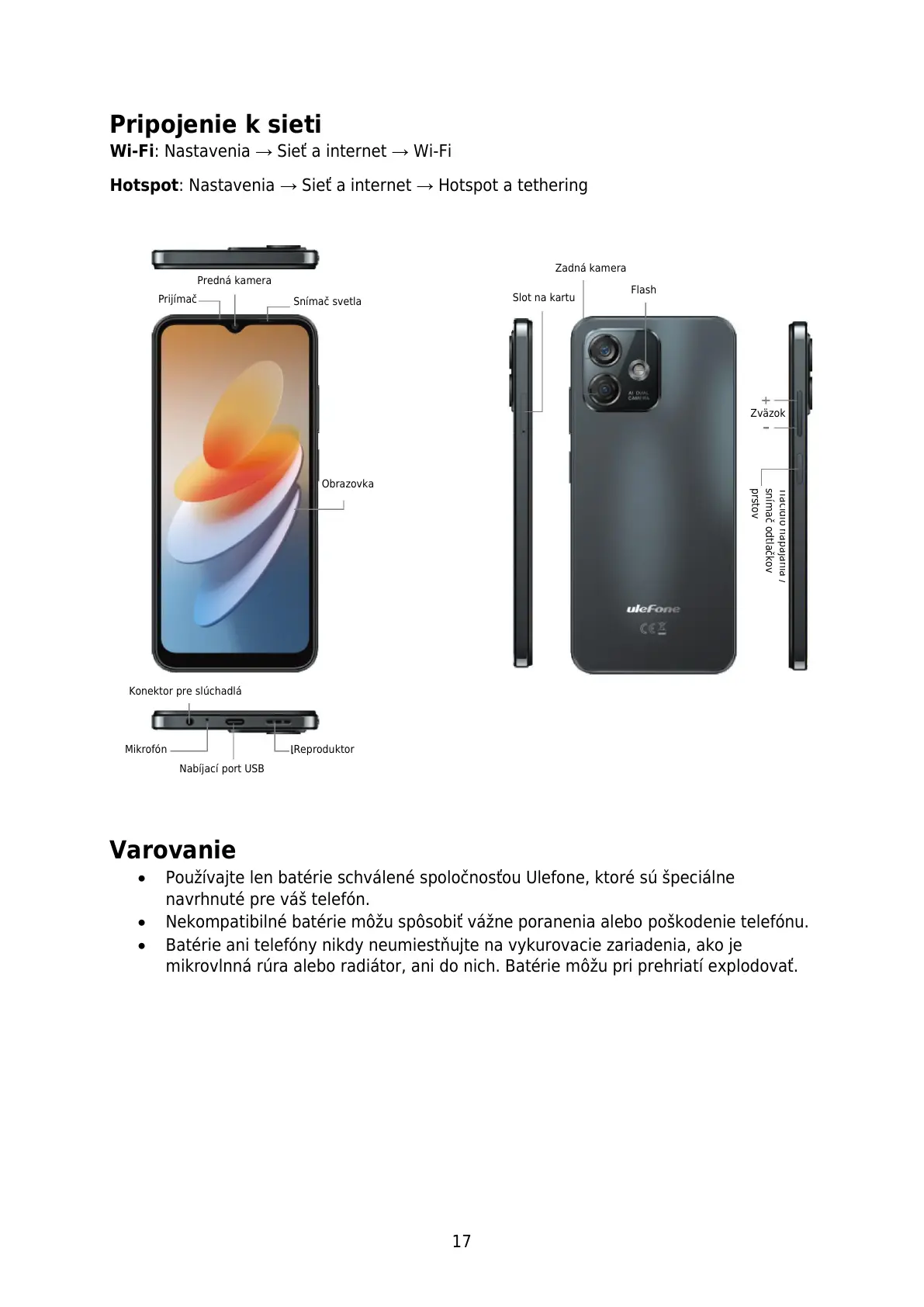 Používajte len batérie schválené spoločnosťou Ulefone, ktoré sú špeciálne