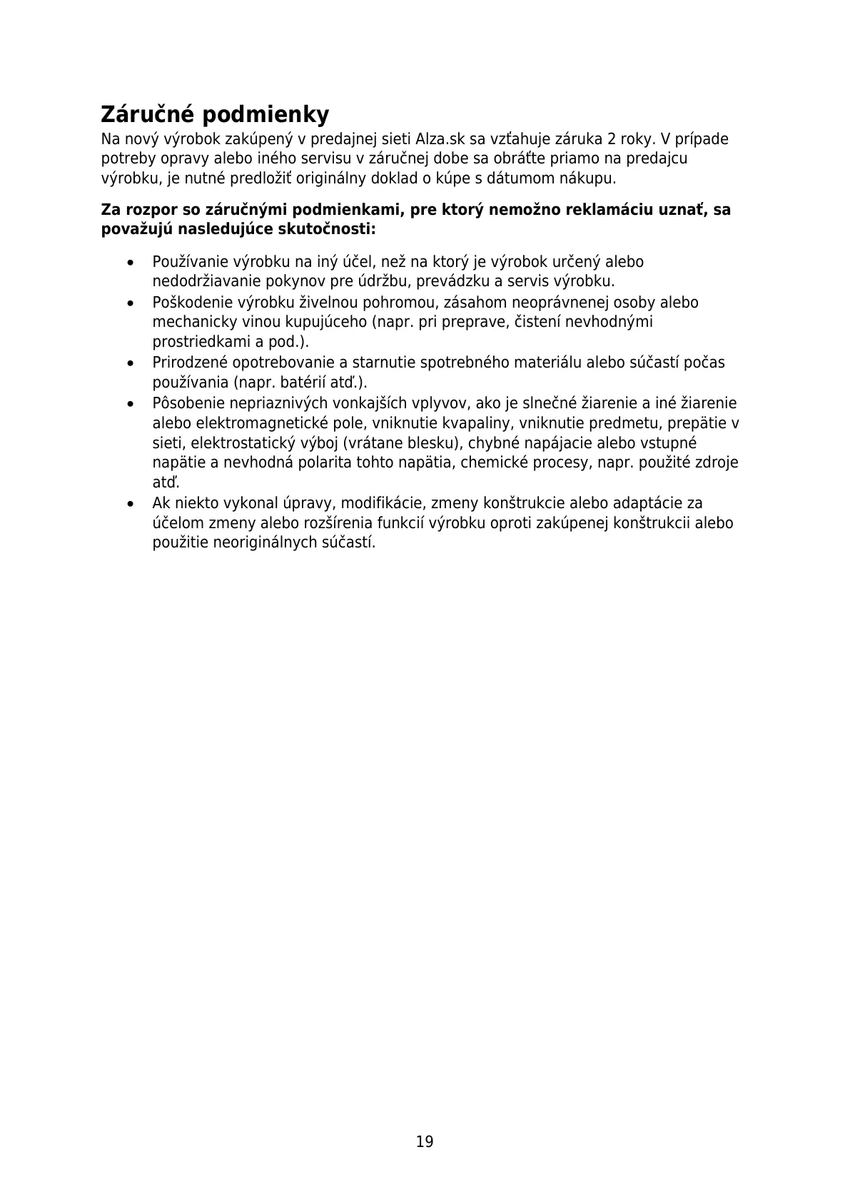 Na nový výrobok zakúpený v predajnej sieti Alza.sk sa vzťahuje záruka 2 roky. V prípade