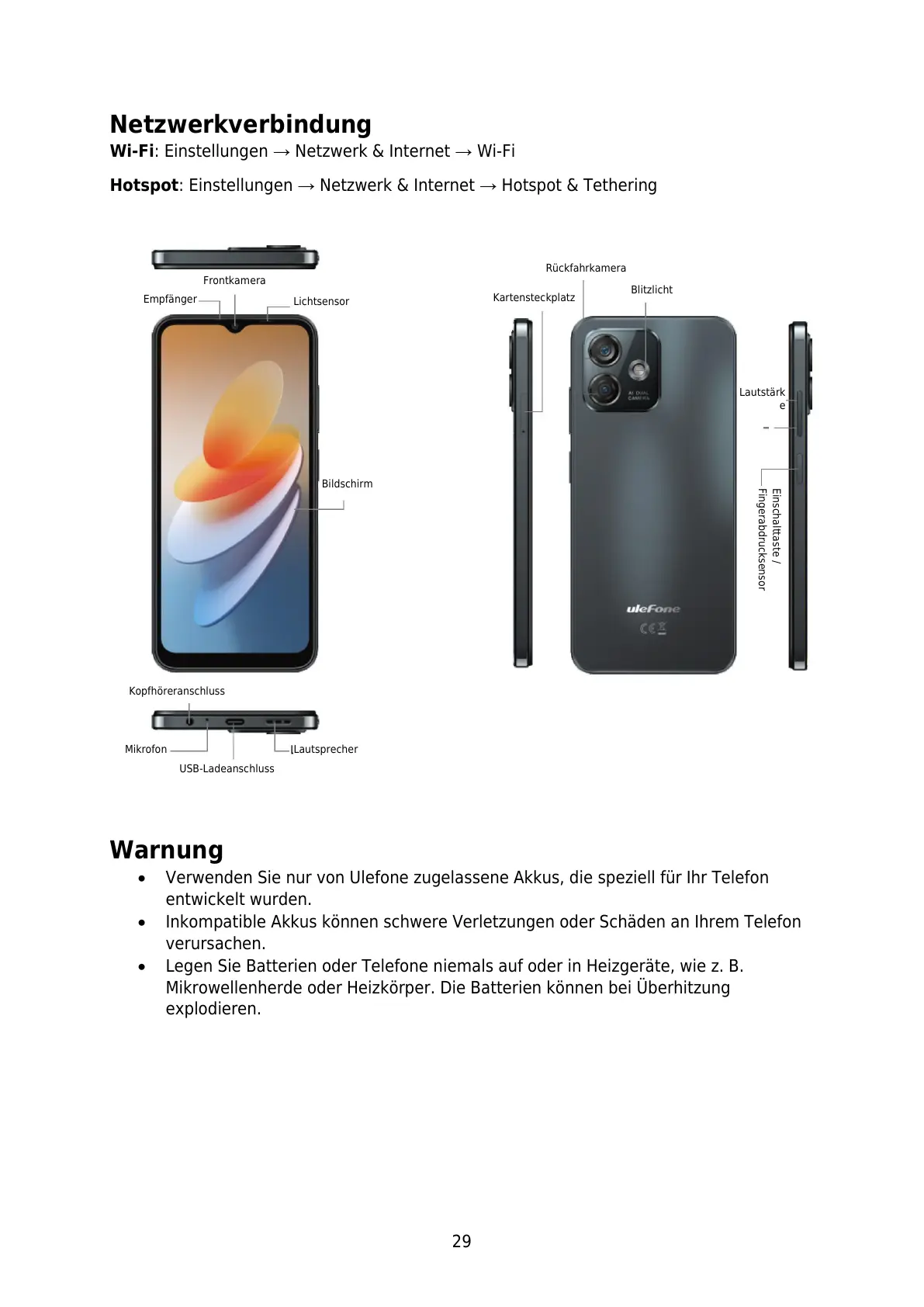 Verwenden Sie nur von Ulefone zugelassene Akkus, die speziell für Ihr Telefon