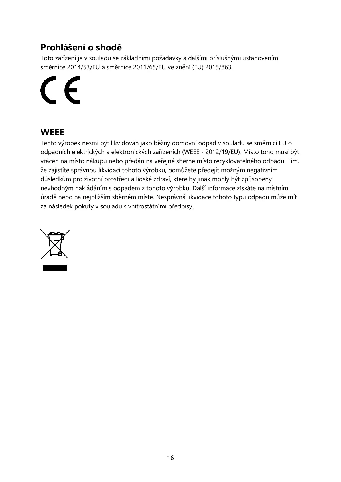 odpadních elektrických a elektronických zařízeních (WEEE - 2012/19/EU). Místo toho musí být