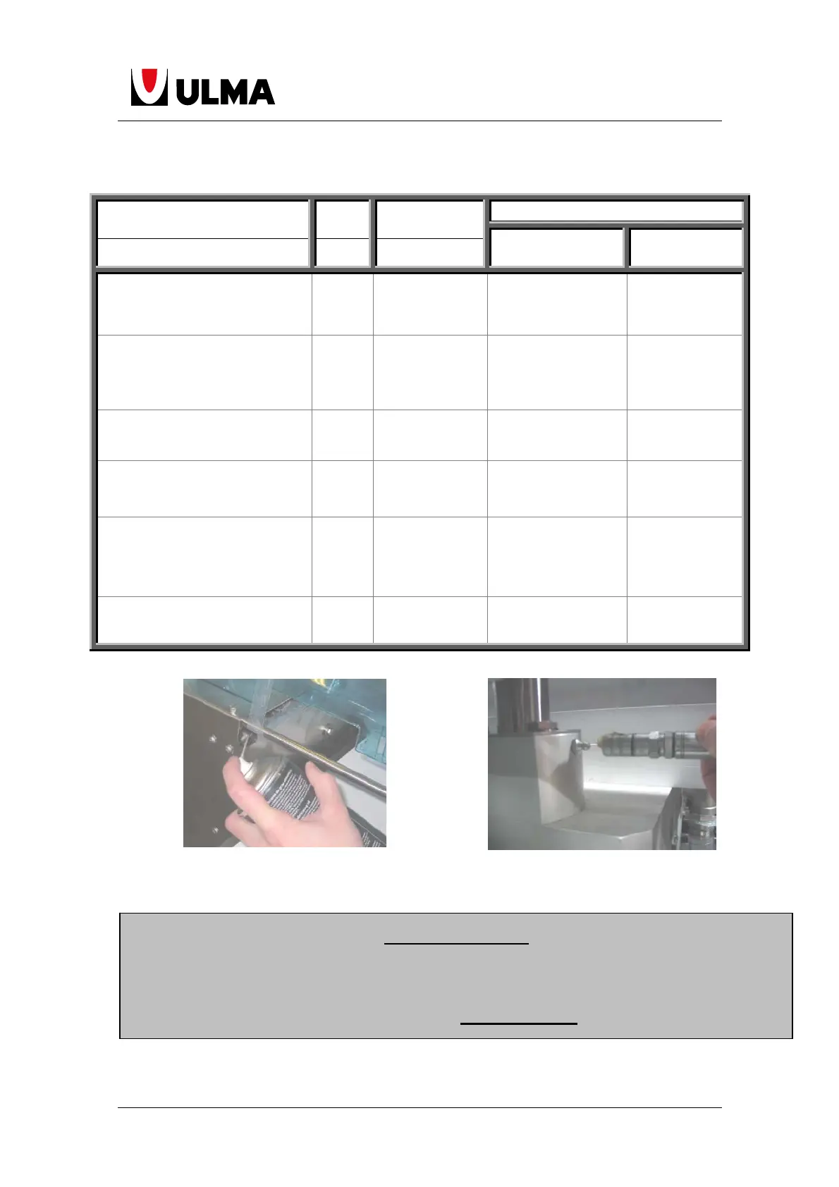 LUBRICATION POINT POINT FREQUENCE