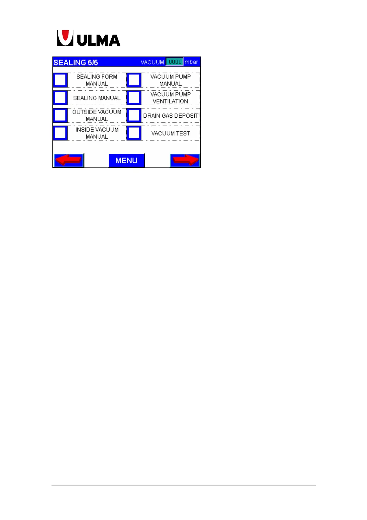 Sealing form manual: The sealing mould lifts. If pressed again it lowers.