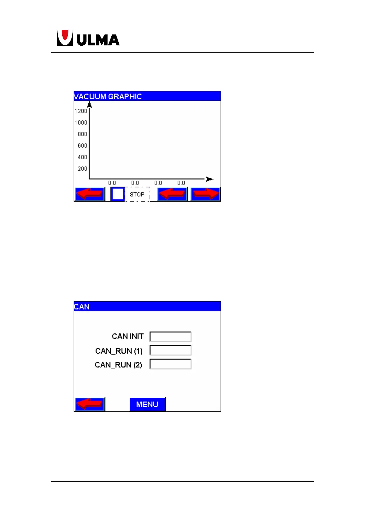 This screen allows the viewing of vacuumeter or vacuumeters of the machine,