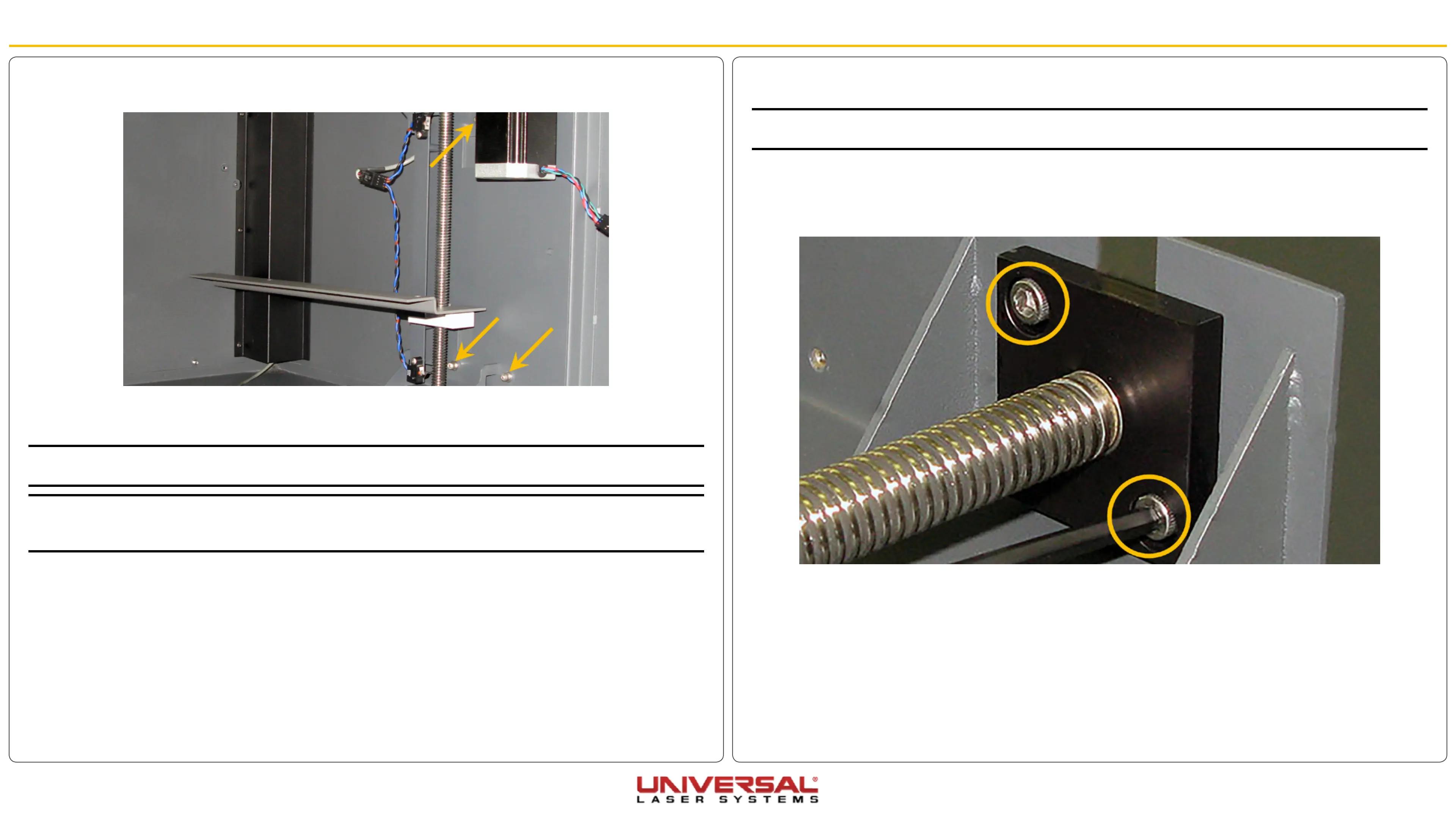 Left Z-Axis Assembly lead screw nuts. Then follow the Z-Axis leveling procedure.