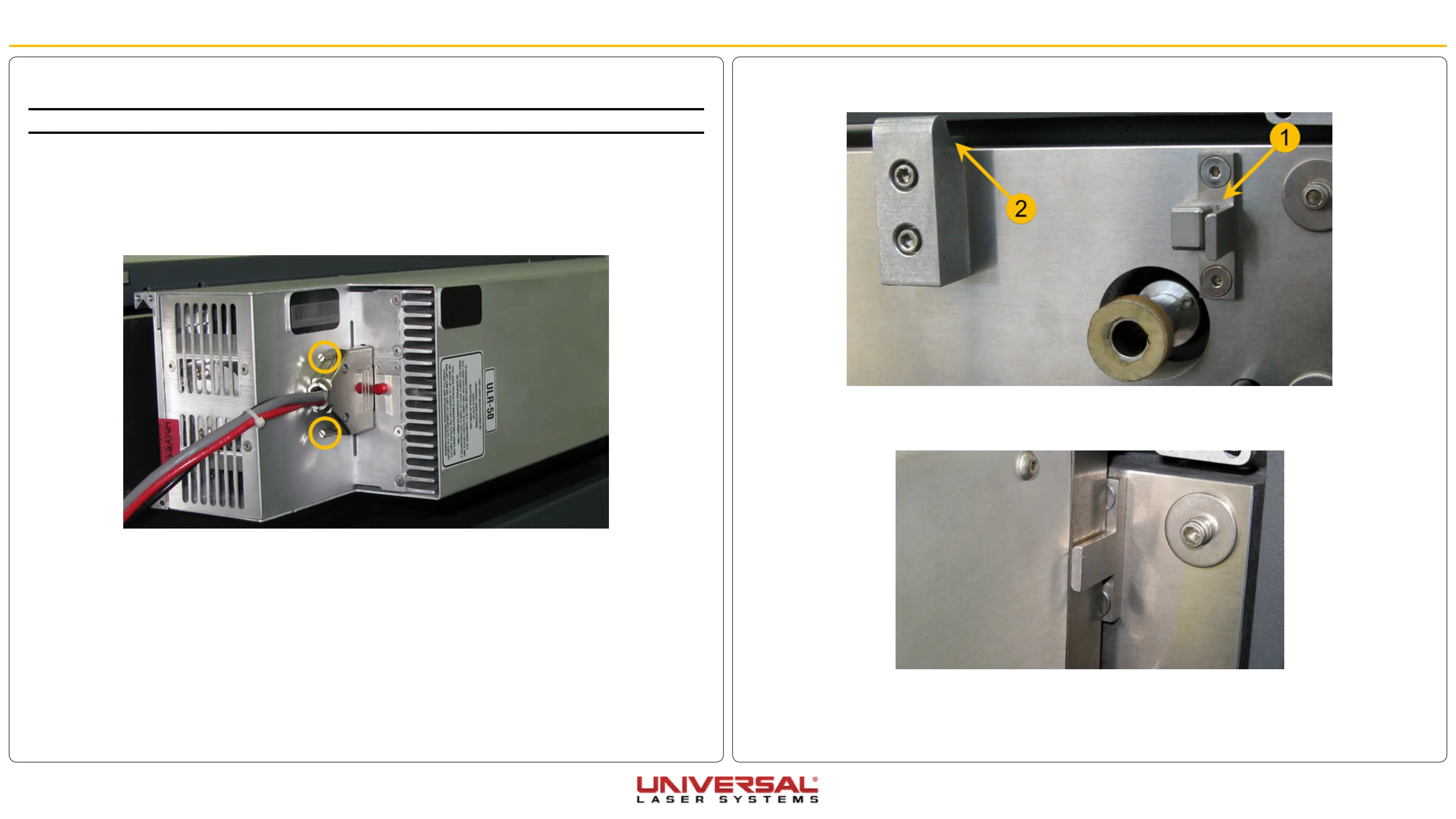 5. For laser re-installation, locate the alignment fork (1) on the right side of the back of the system as well