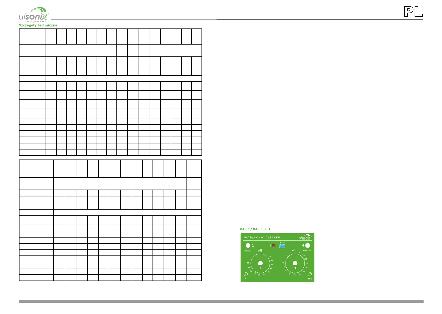 Moc ultradźwięków (W) 60 60 120 2x 60 3X60 4X60 8X60 60 80 2X80 3X60 6X80 60