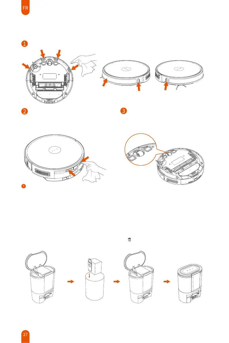 Utilisez un chiffon humide pour nettoyer tous les capteurs du robot.