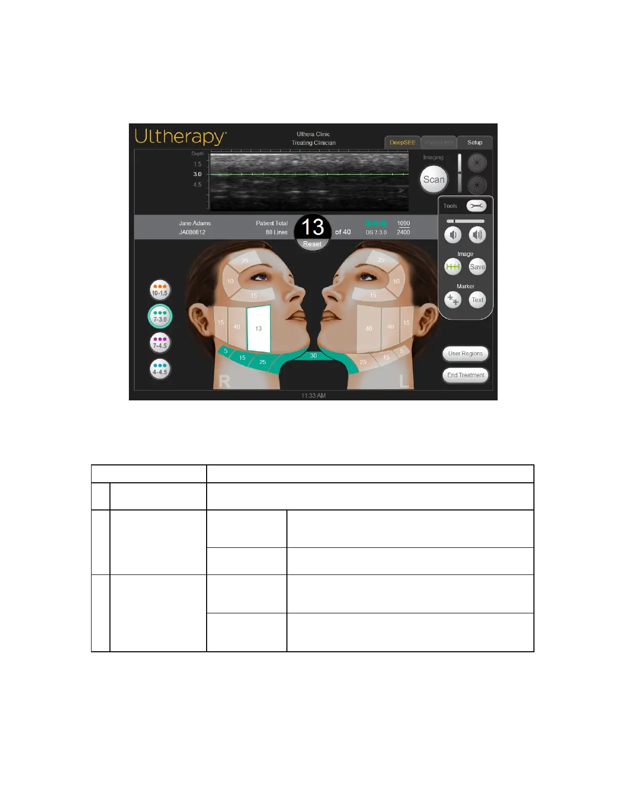 green treat line displayed on the ultrasound image.
