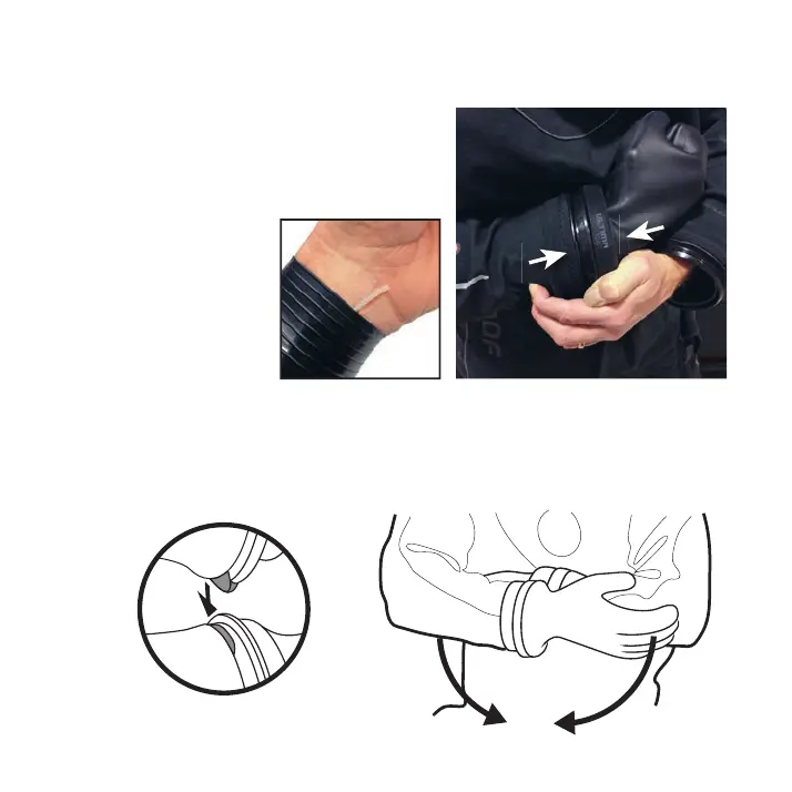 2. Put on the dry glove and press the glove ring and suit ring