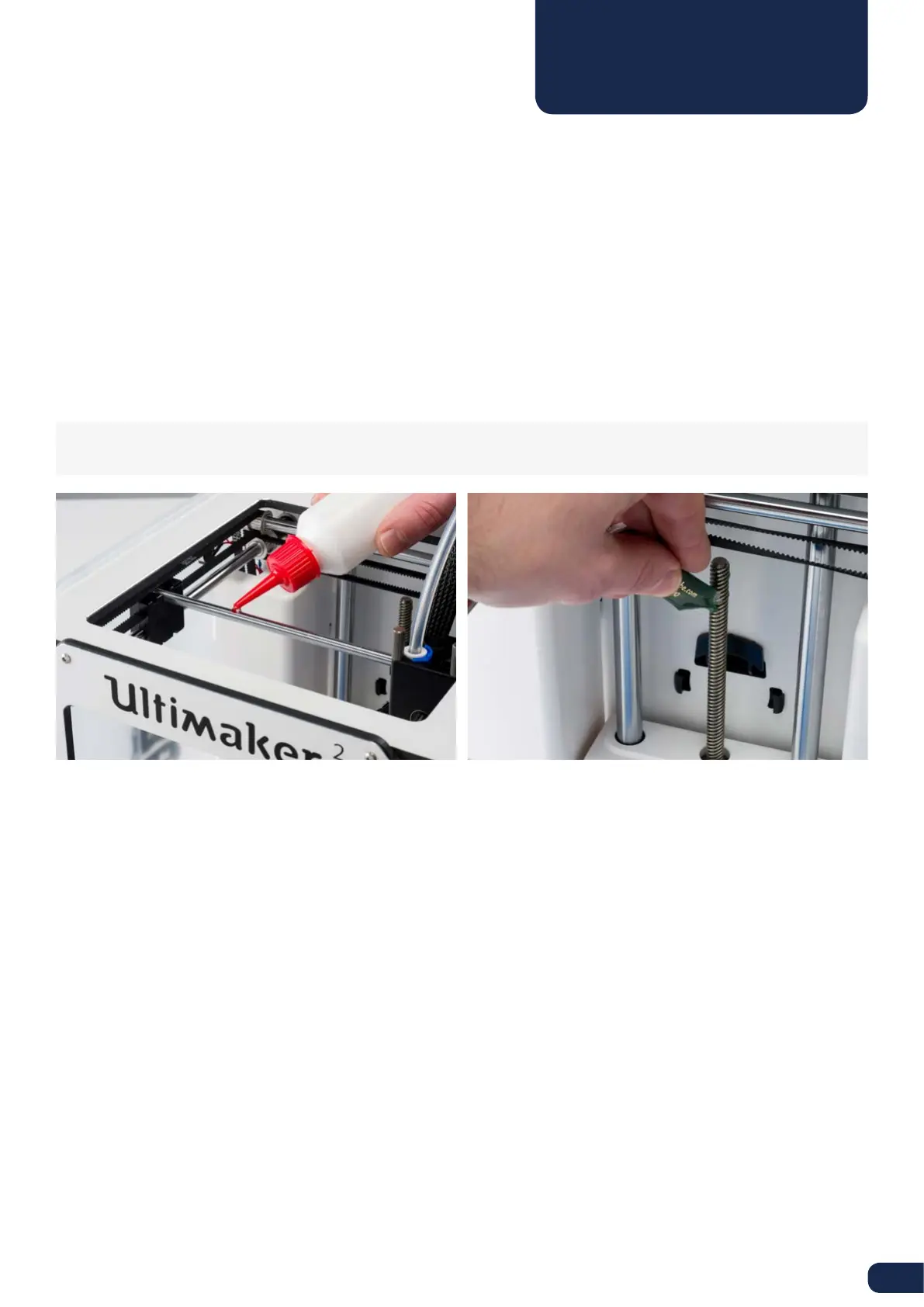 To maintain your Ultimaker 2 Go correctly and keep it running smoothly it is recommended to lubricate the axes once in