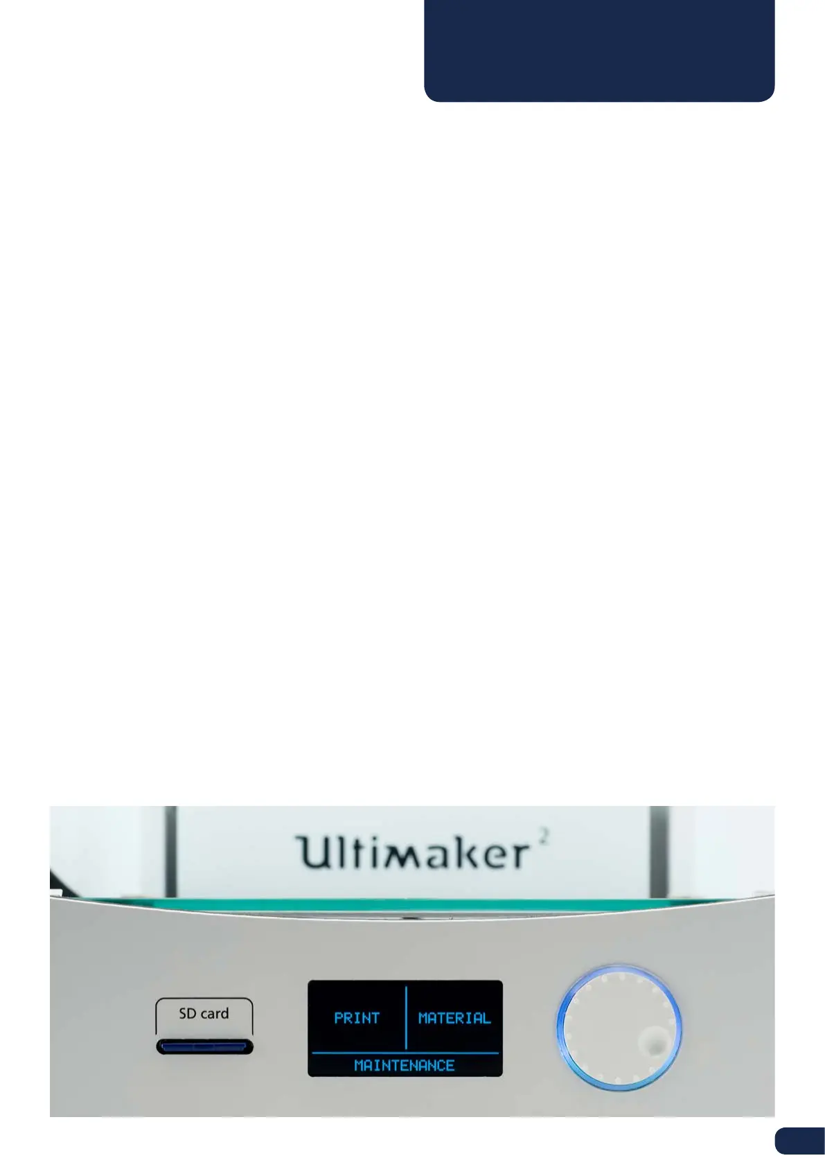 When turning on your Ultimaker 2, you will always see the Ultimaker logo first after which you will go to the main menu.