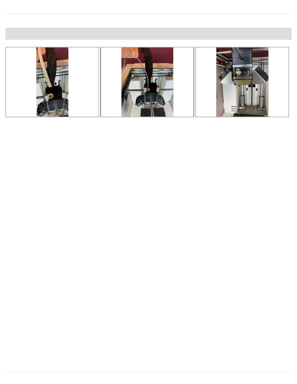 clear filament coming from the nozzle when it has been fully purged. Pull the filament you just