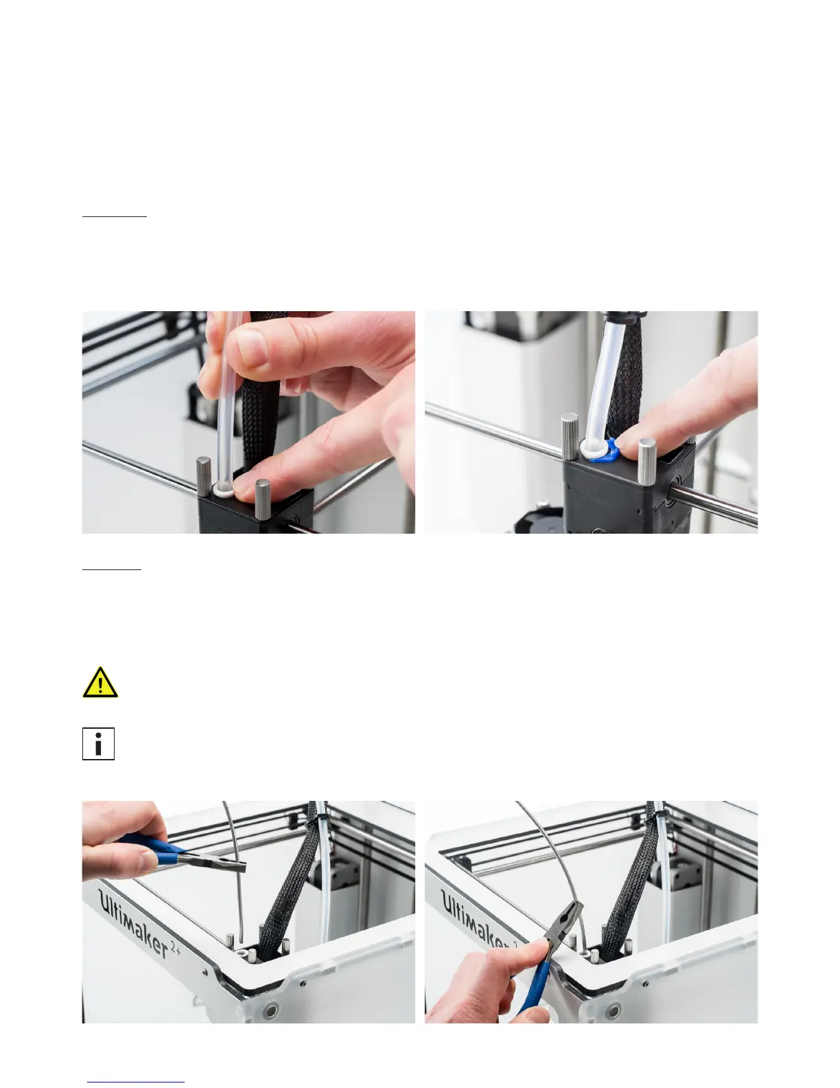 4. Remove the Bowden tube by pushing down on the tube coupling collet while pulling the Bowden tube upwards, out of