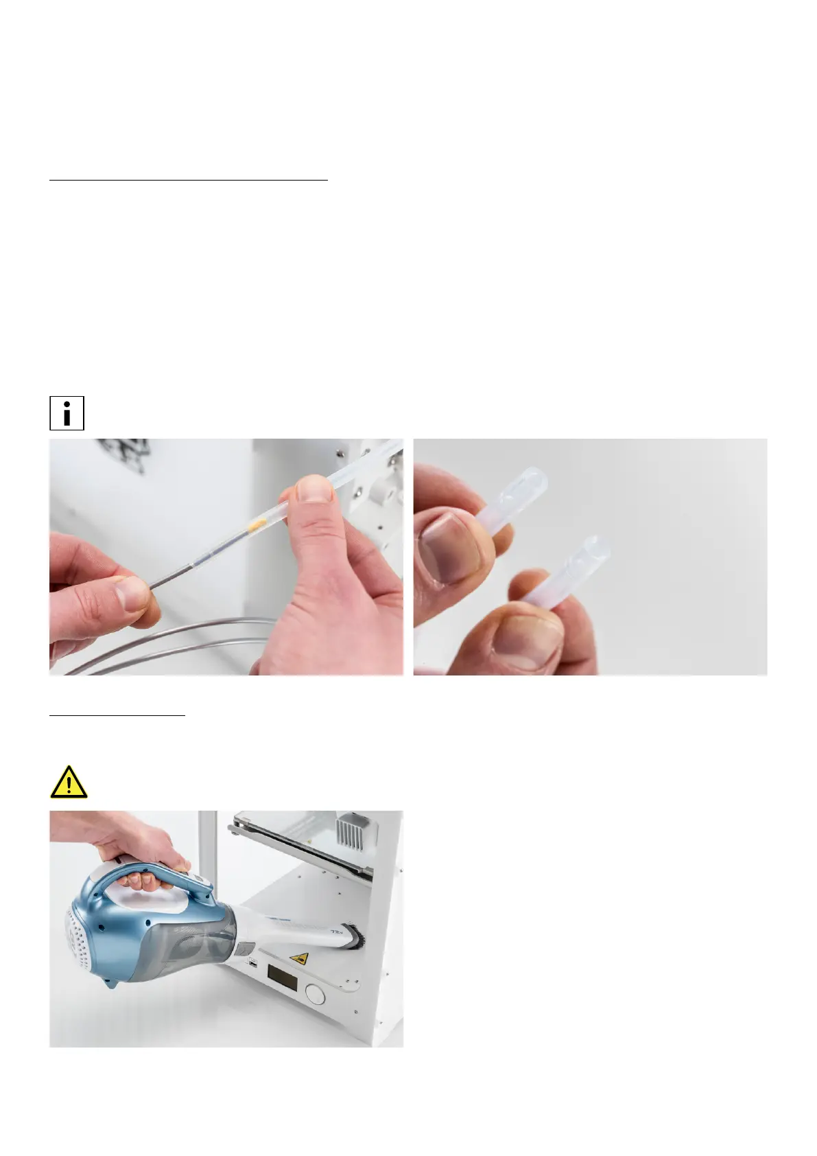 If the particles are already stuck in the bowden tubes, clean these as well. To do so, the bowden tubes have to be removed