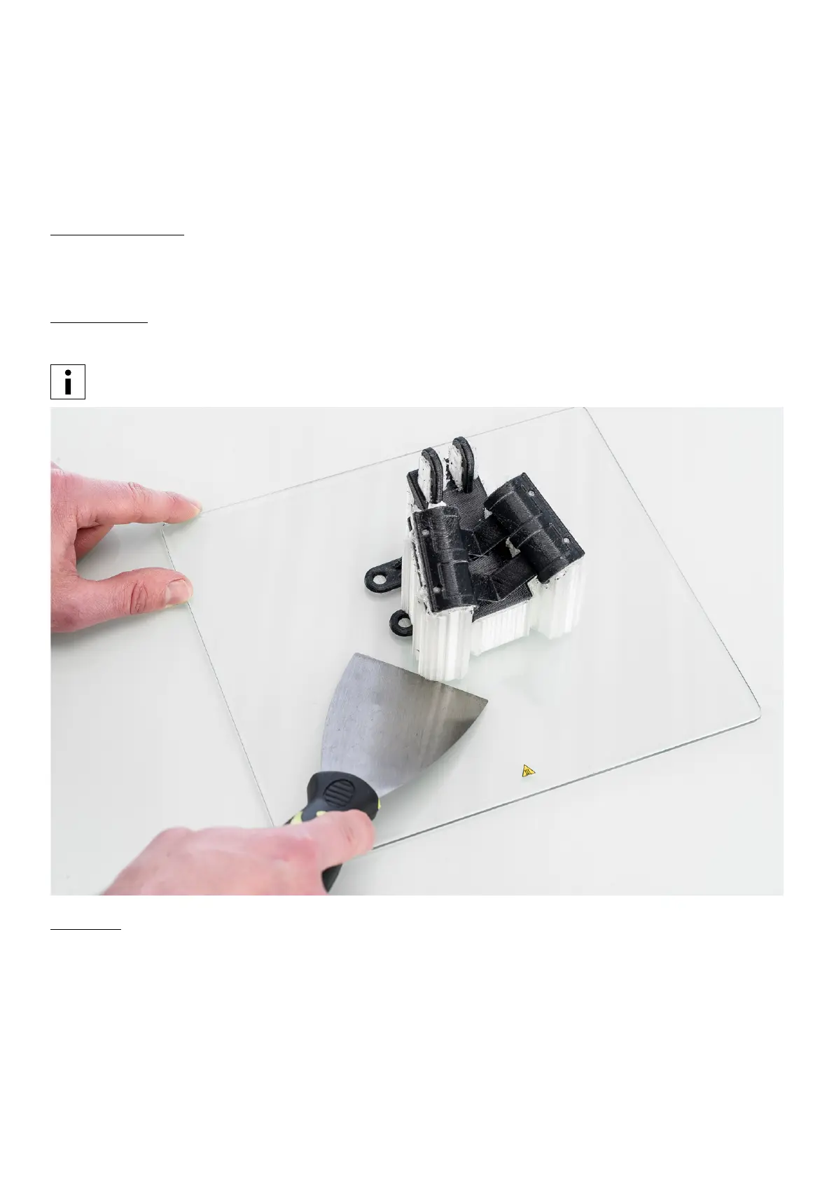 Take the glass plate out of the printer to avoid damage on the build plate clamps.