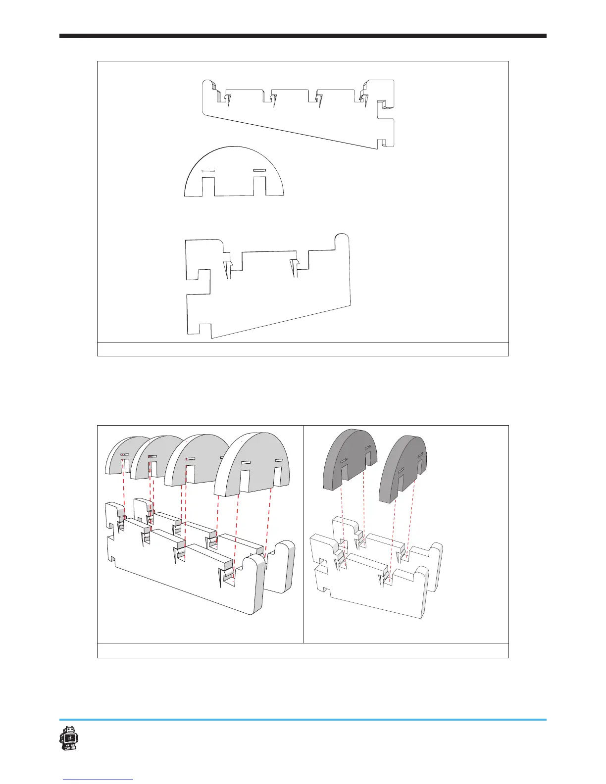 2. Push the four wooden parts 11C in the slots of the two wooden parts