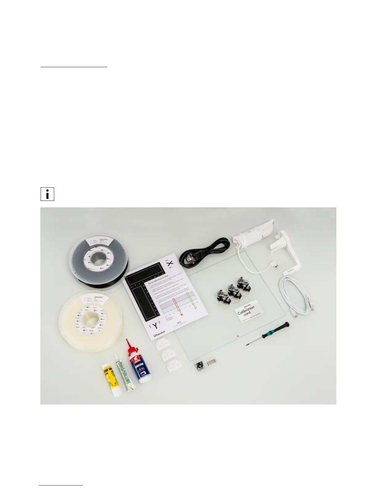 Besides the printer itself, a quick start guide, and test print, the Ultimaker S5 is supplied with several hardware