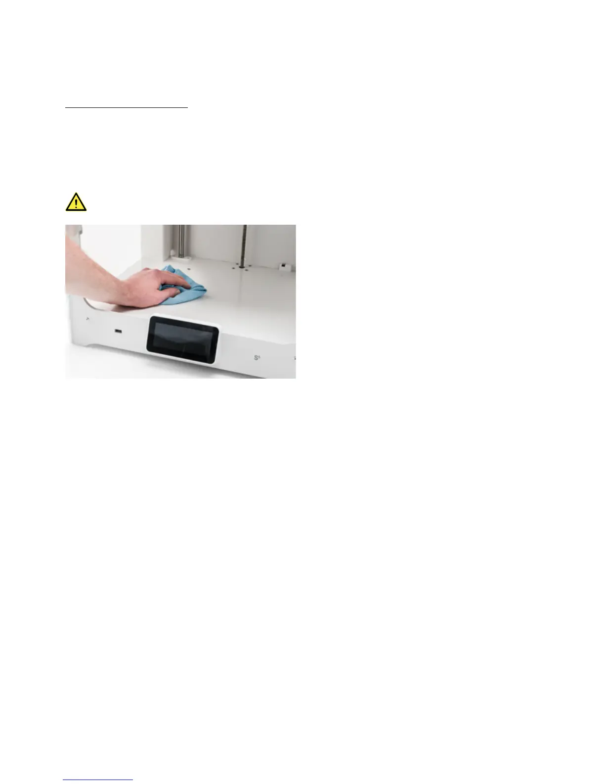 Small pieces of material can gather inside the printer, such as priming blobs. Remove these regularly from the inside of