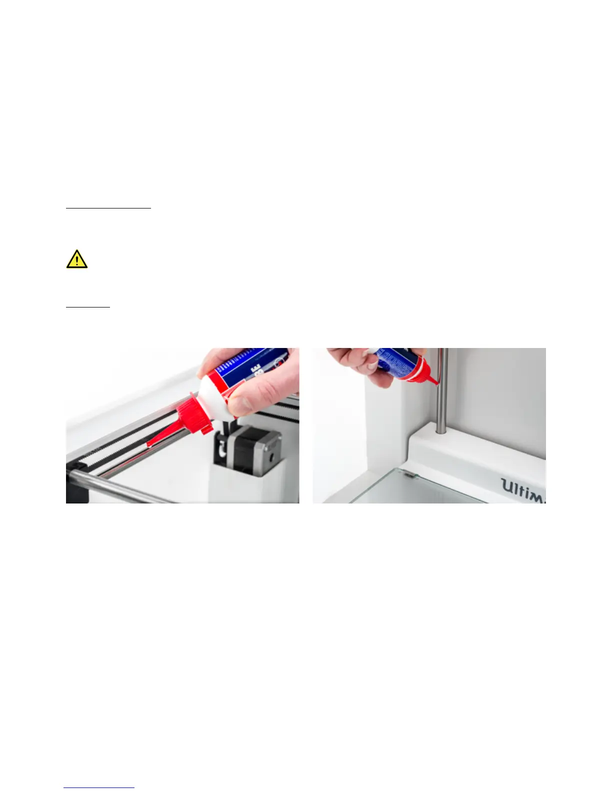 print adhesion. If a drop of oil does fall on the build plate, make sure to clean it thoroughly before printing.