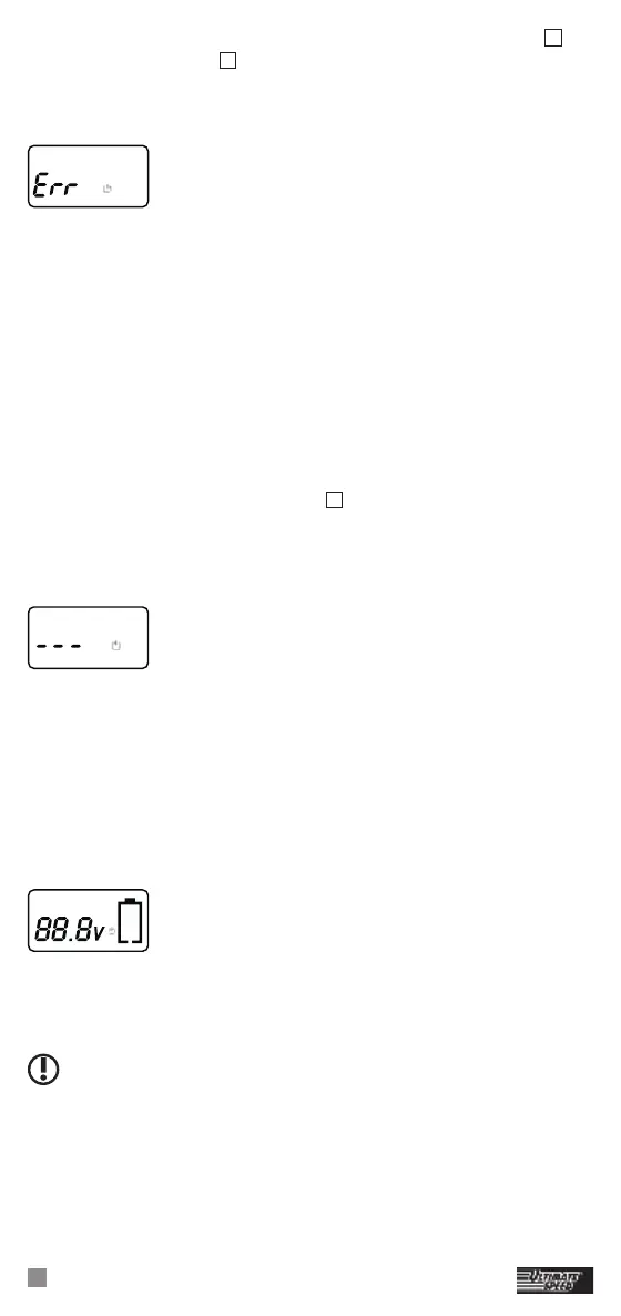 od 2 V ali več od 15 V, se akumulator ne polni. Na zaslonu se prikaže