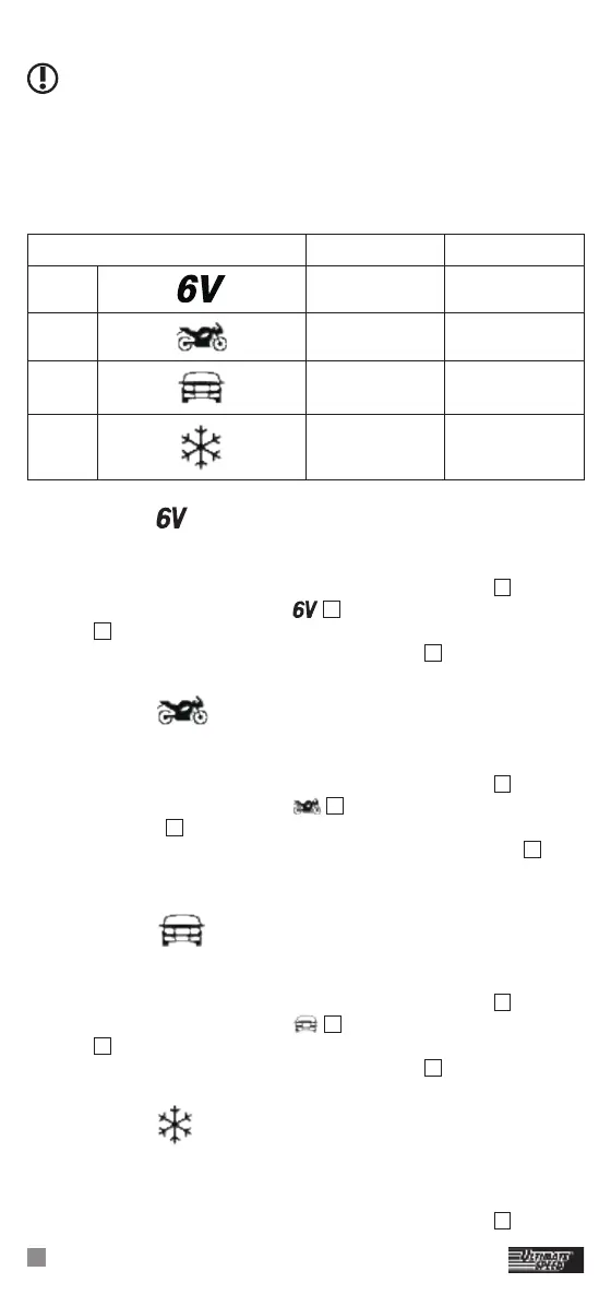 Pro nabíjení 6V baterií s kapacitou menší než 14 Ah: