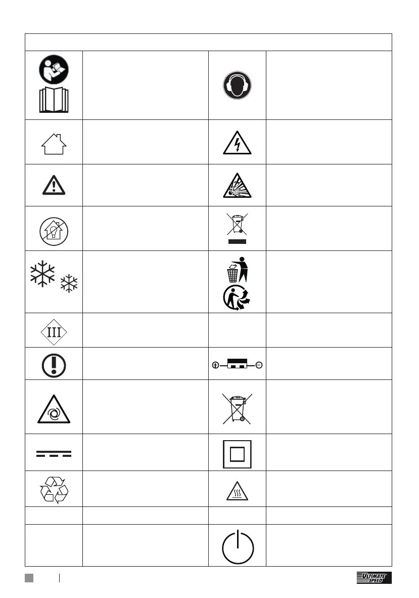 ULTIMATE SPEED UPK 10 E2 - Tabel Van de Gebruikte Pictogrammen
