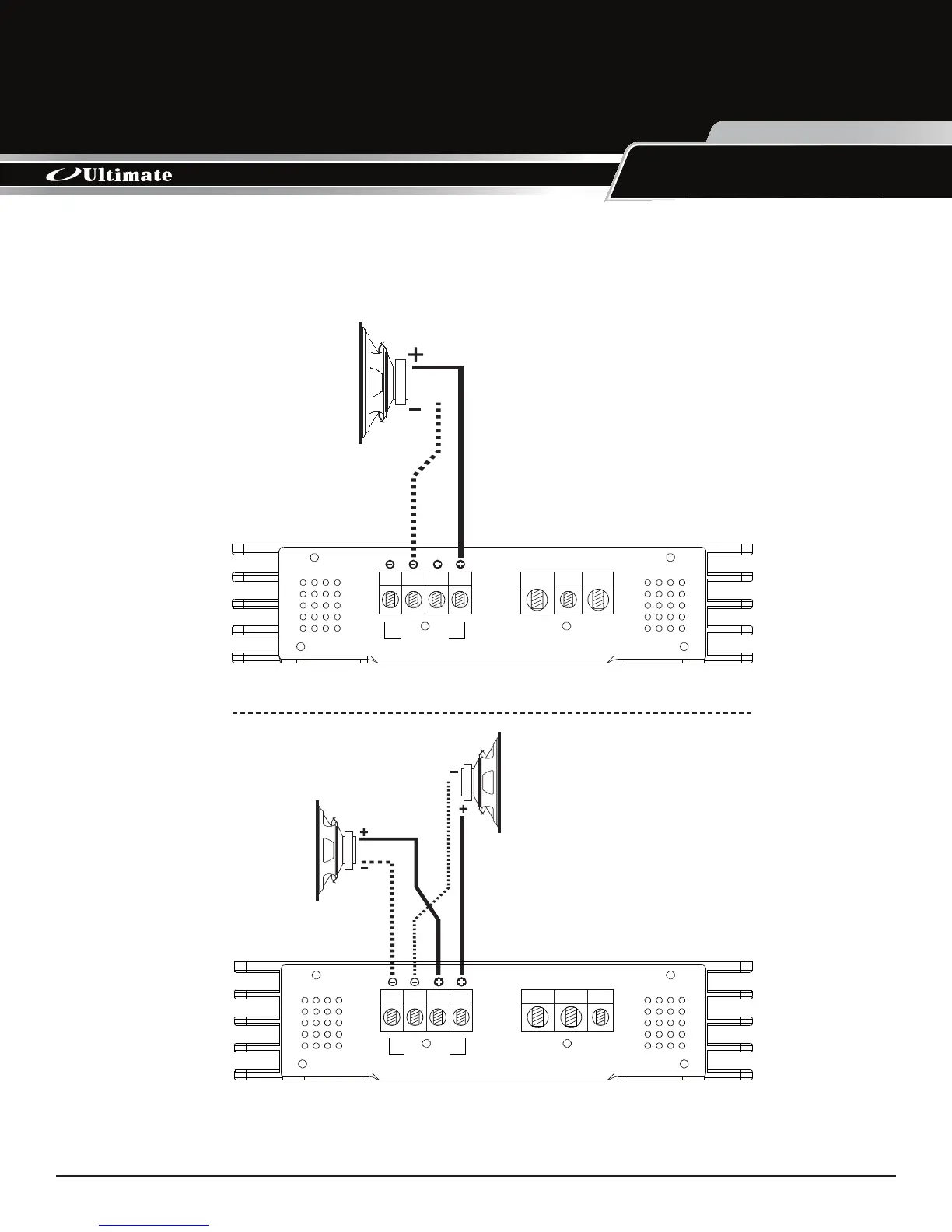 Note: Use a minimum of 4ga power and ground on this amplifier. A 40 amp fuse is required.