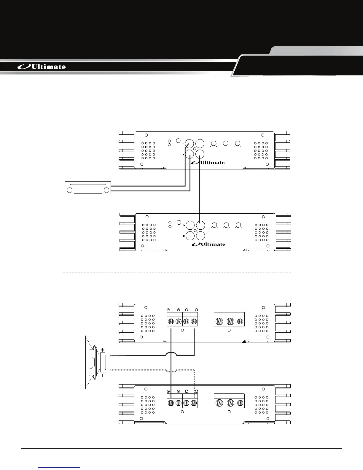 Remarque: Utilisez un fil de calibre 4 pour l’alimentation et la mise à la masse de cet amplificateur. Un fusible