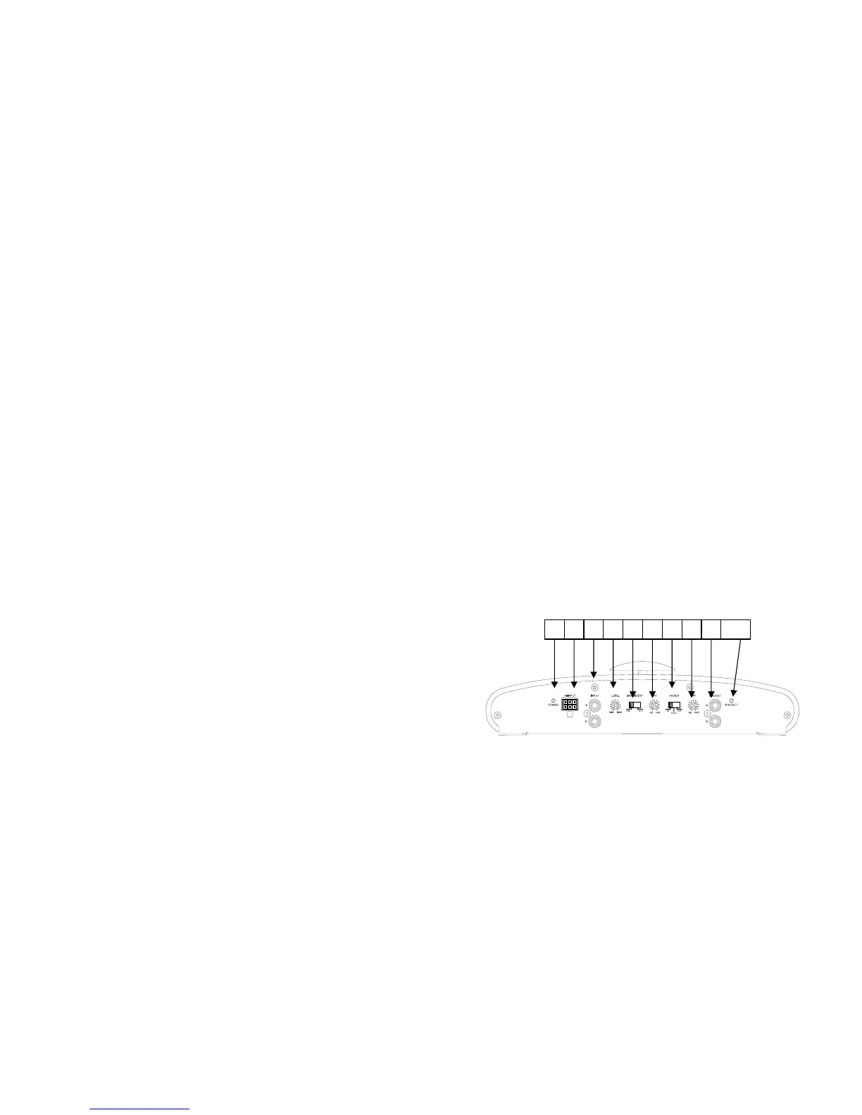 4. input level adjust 5. Bass boost 6. Low pass freq. adjust