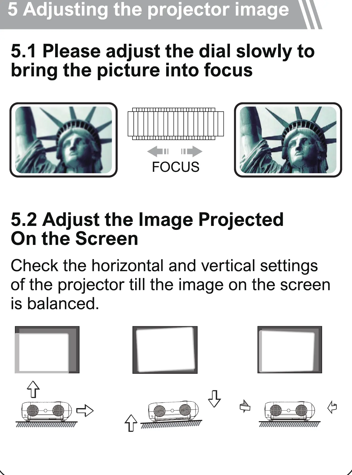 ULTIMEA Apollo P20 - Adjusting the Projector Image; Focus Adjustment; Screen Image Balancing