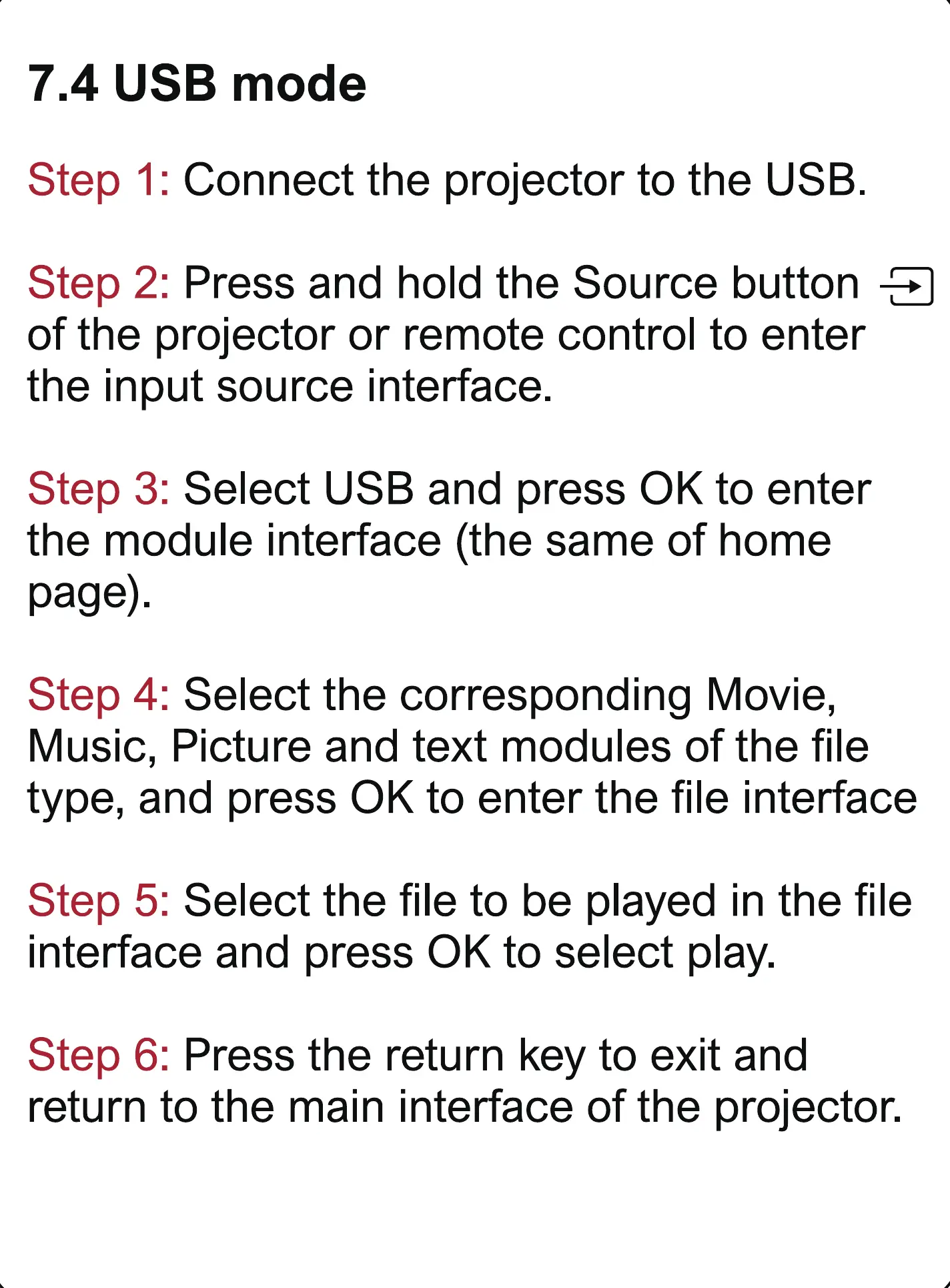 Step I : Connect the projector to the USB.